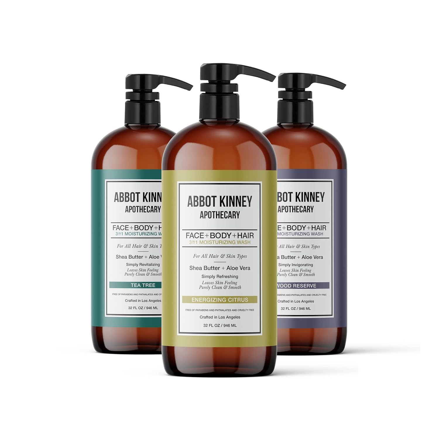 ABBOT KINNEY APOTHECARY Men's 3-in-1 Wash, Moisturizing Shampoo, Conditioner, and Body Wash for Men, Suitable for All Skin and Hair Types, 32oz (Combo Pack, 3 Pack)