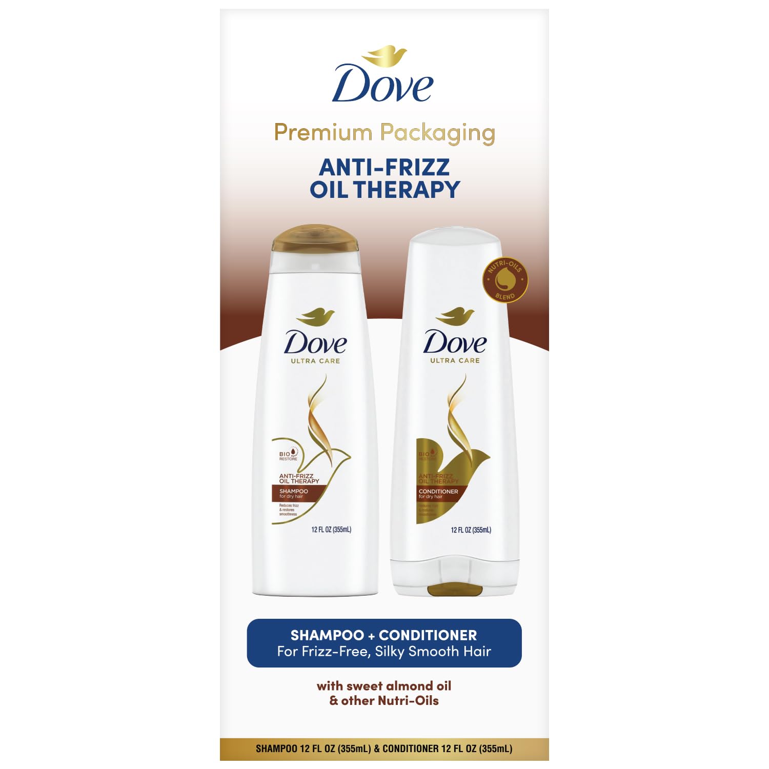 Dove Shampoo and Conditioner Set - Anti-Frizz Oil Therapy with Sweet Almond Oil, Hair Care Products for Women, Dry Hair Treatment, 12 Oz (2 Piece Set)