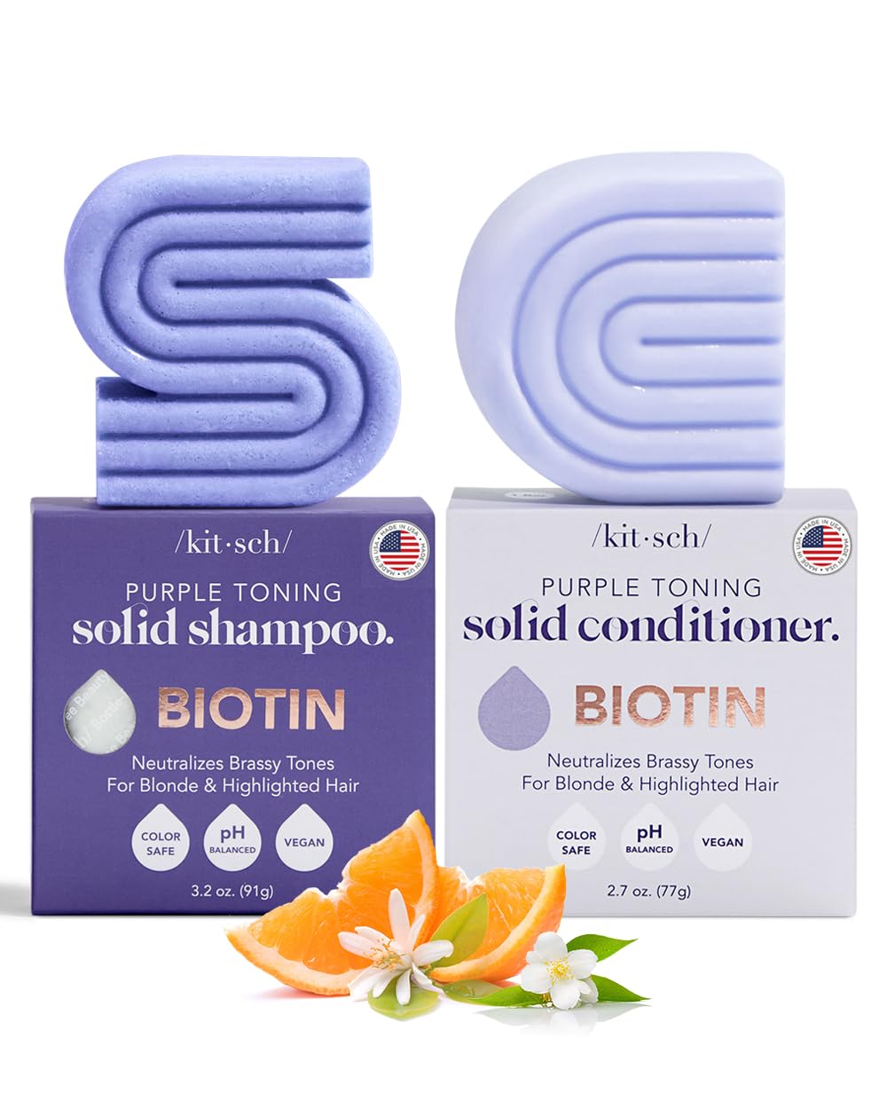 Kitsch Purple Shampoo & Conditioner Bar for Color Treated & Grey Hair, Made in Us, Toning Bar Shampoo & Conditioner for Blonde, Grey & White Hair
