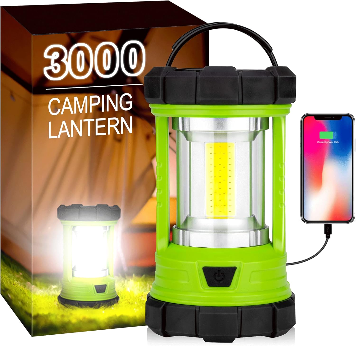 【3000LM High Bright】lluminate your next adventure with the elesall camping lantern! With a super brightness of 3000LM and double COB light panels giving a 360°wide beam, this camping lantern can illuminate the entire 800sf space.The lantern is incredibly bright and can light up your campsite like it is daytime, making it the perfect addition to your camping gear.This versatile lantern is perfect for camping, road trips, and emergency situations.