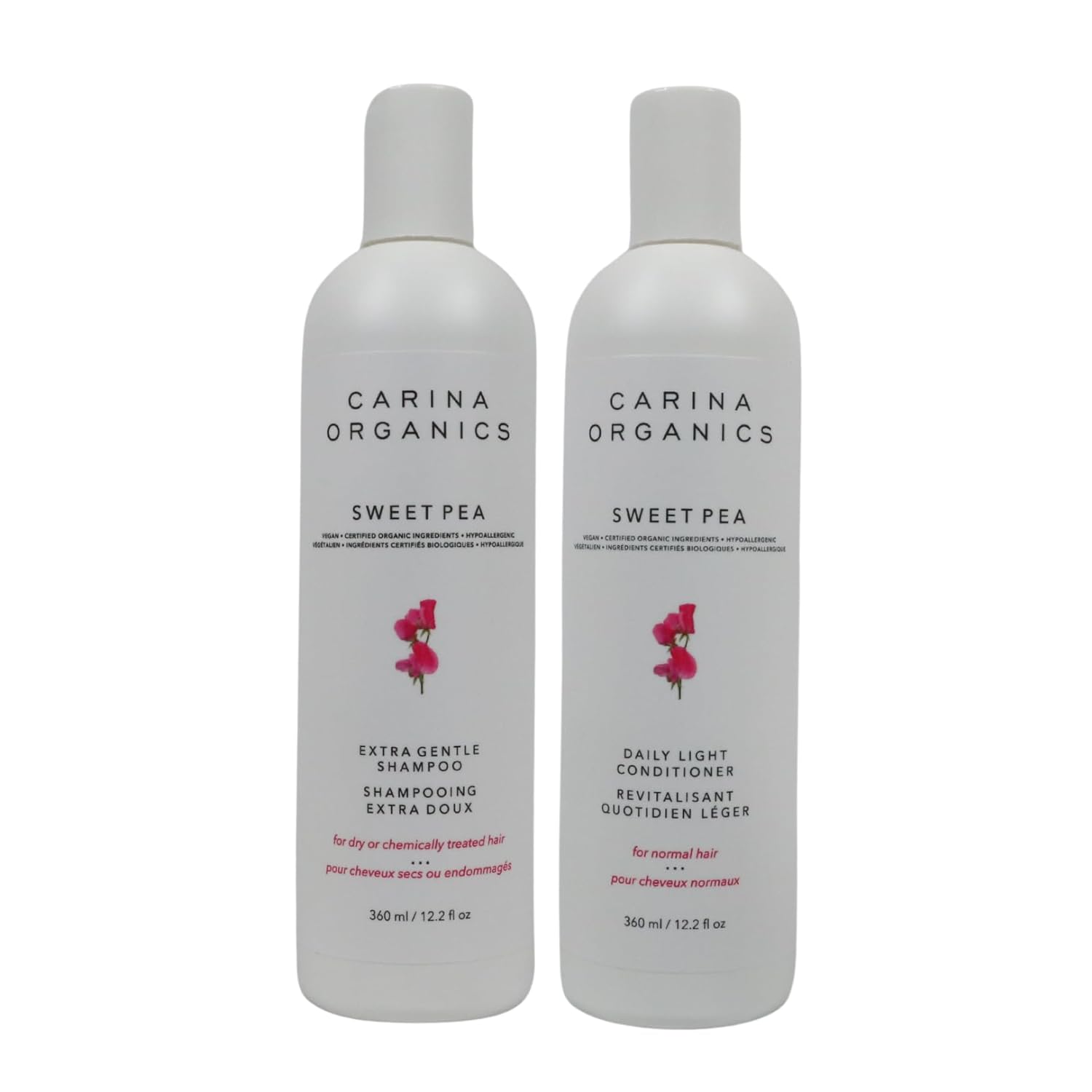 Sweet Pea Gentle Shampoo and Daily Light Conditioner Bundle, Organic Hair Shampoo Conditioner Set, sulfate-free, 360 ml (Pack of 2)